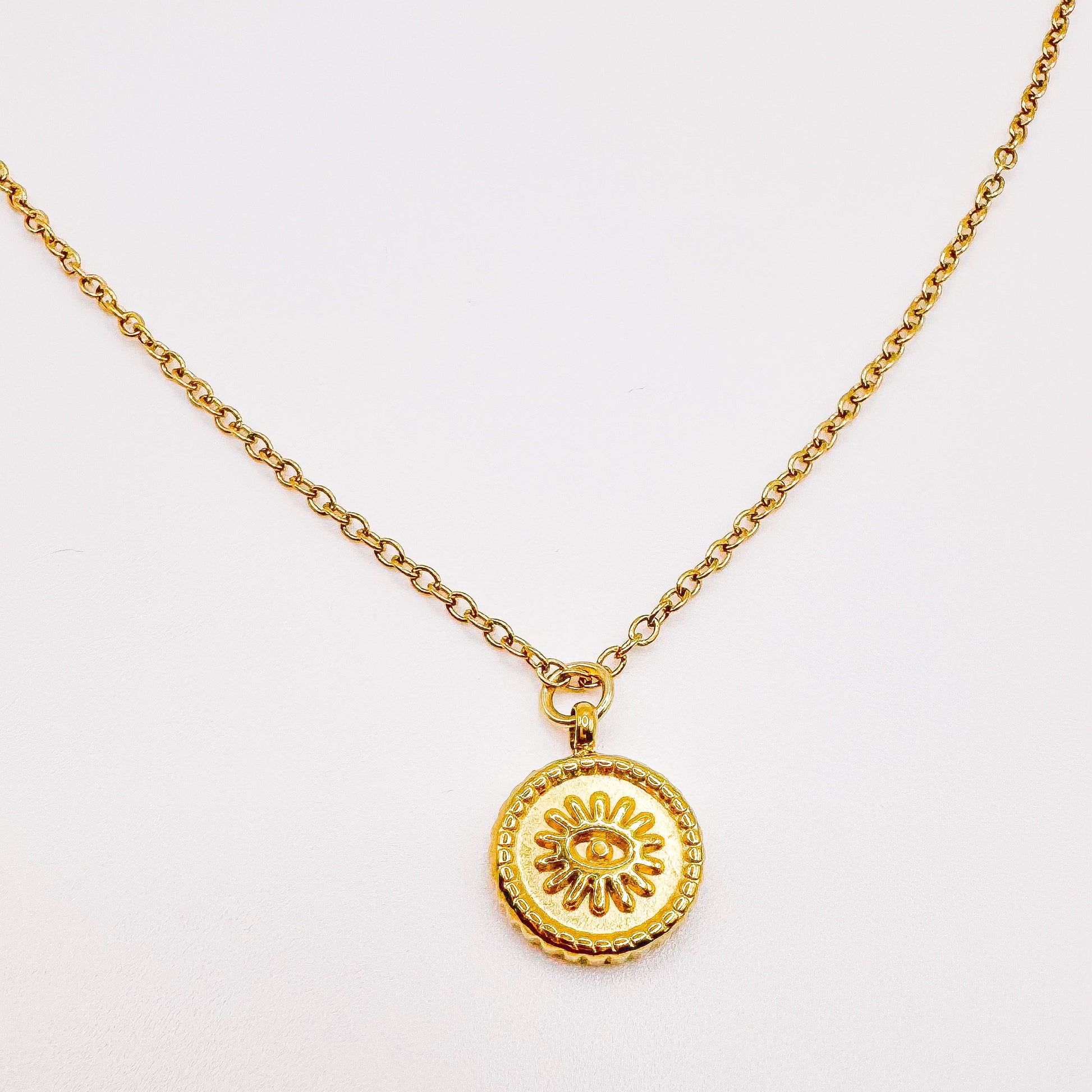 Material acero inoxidable dorado con dije sólido de ojo turco.